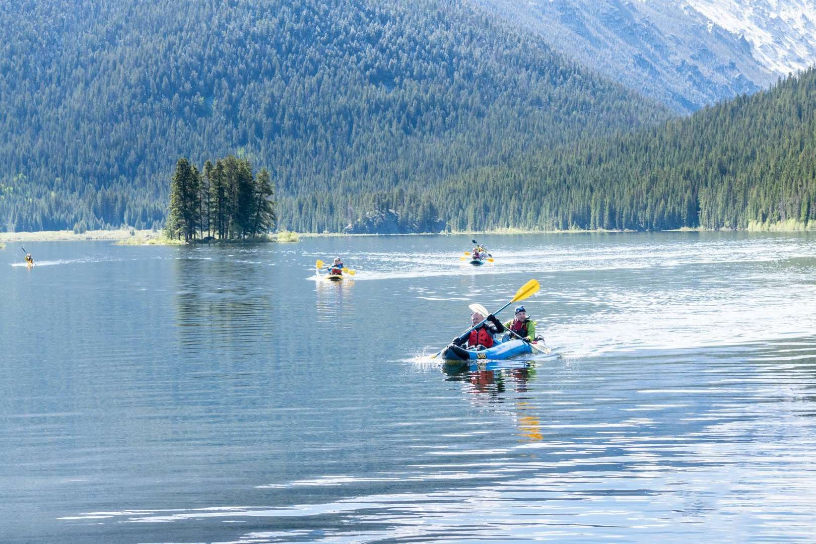 "The handles are placed well, and make carrying it very comfortable. The T-zip, while a little on the smaller side, fit all of our dry bags nicely inside the boat. This helped keep our cockpits clean and less clogged up with our stuff. And seats blow up, making it a very comfortable seating arrangement, especially for the long-haul paddle legs."
